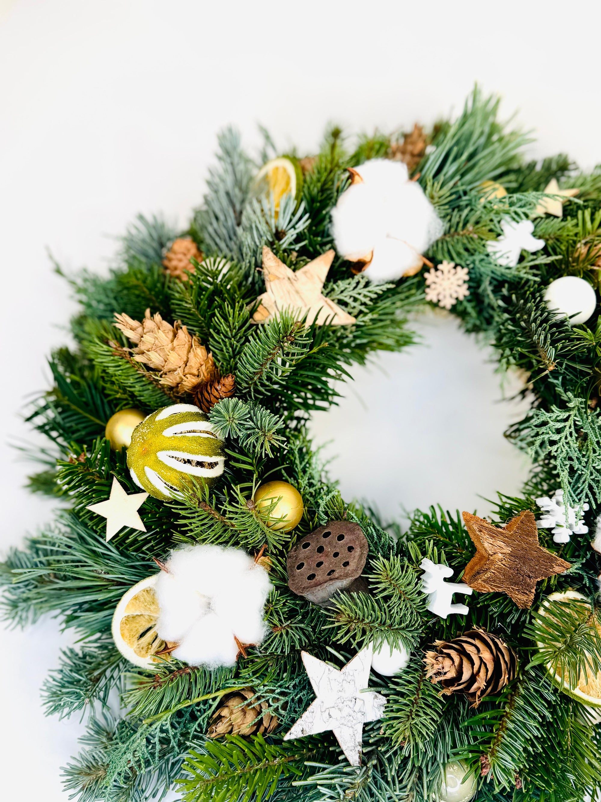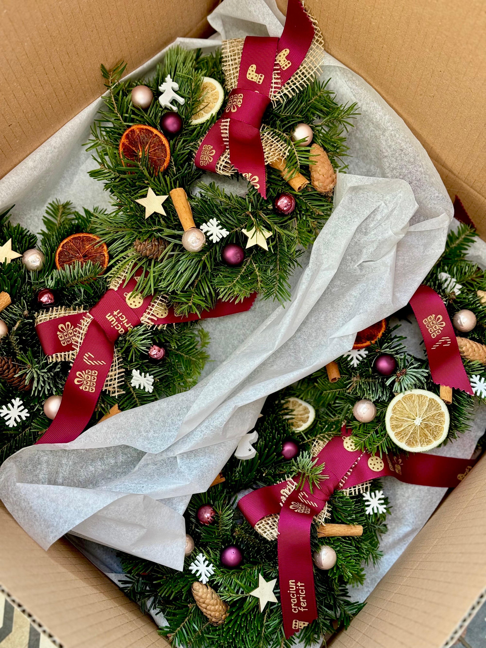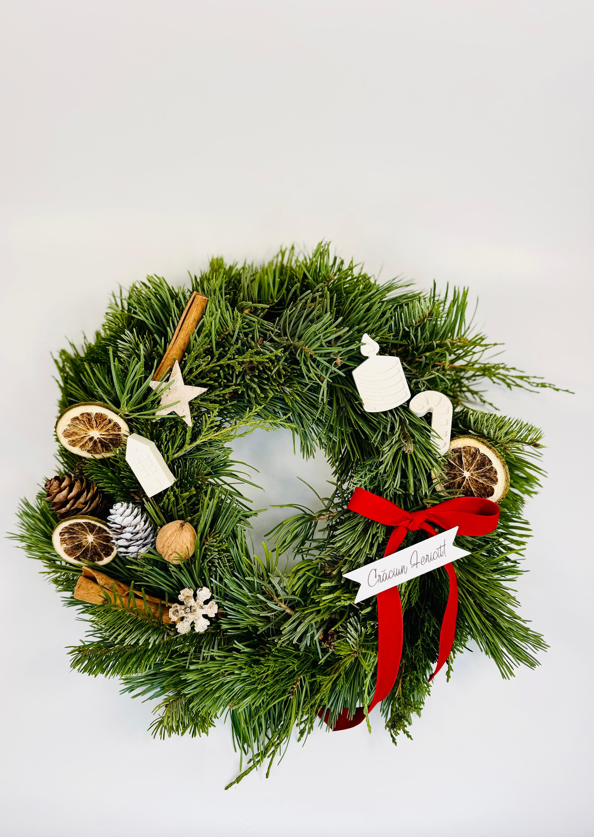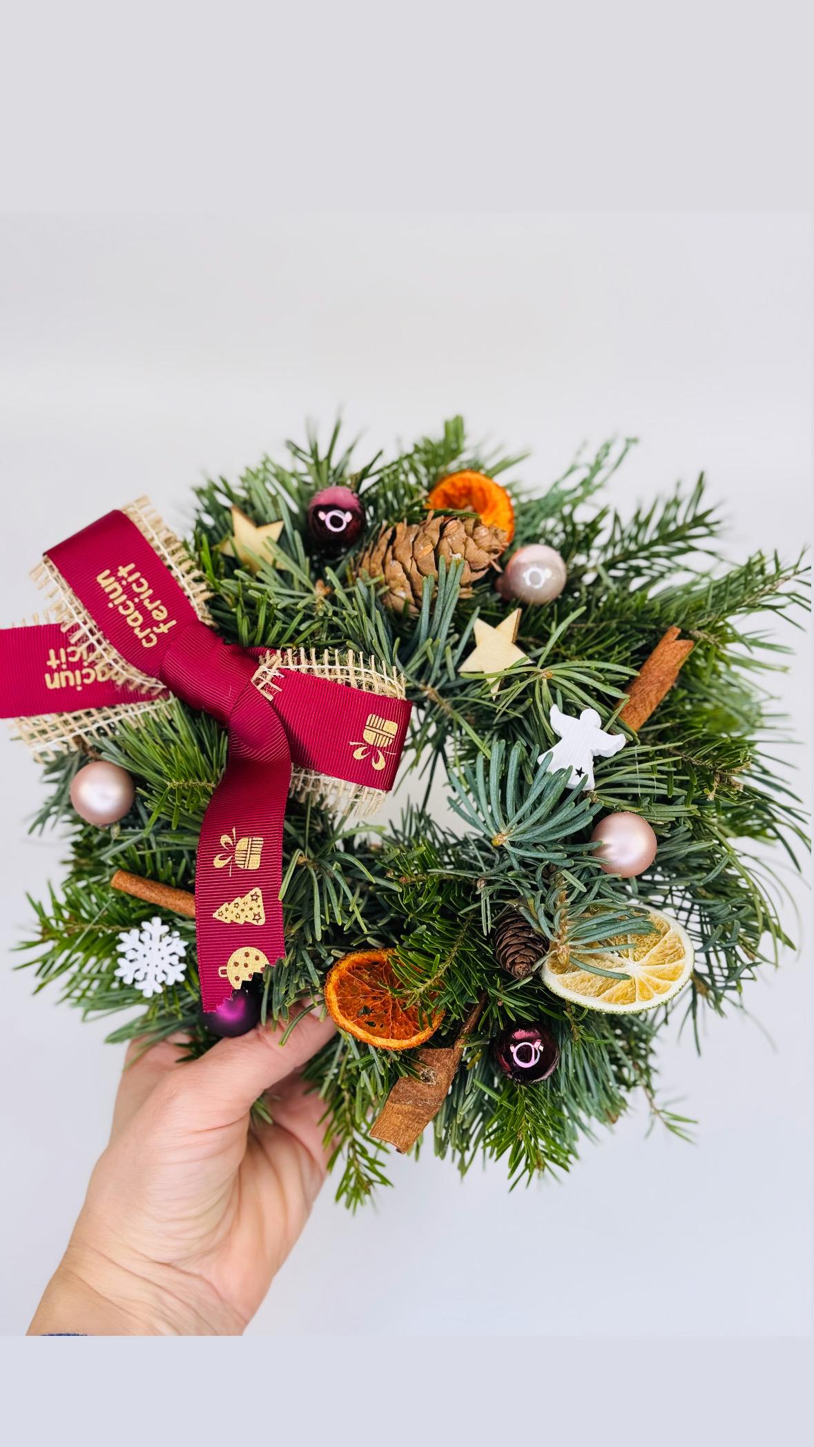 Coronita Craciun Brad Argintiu 4 Lumanari