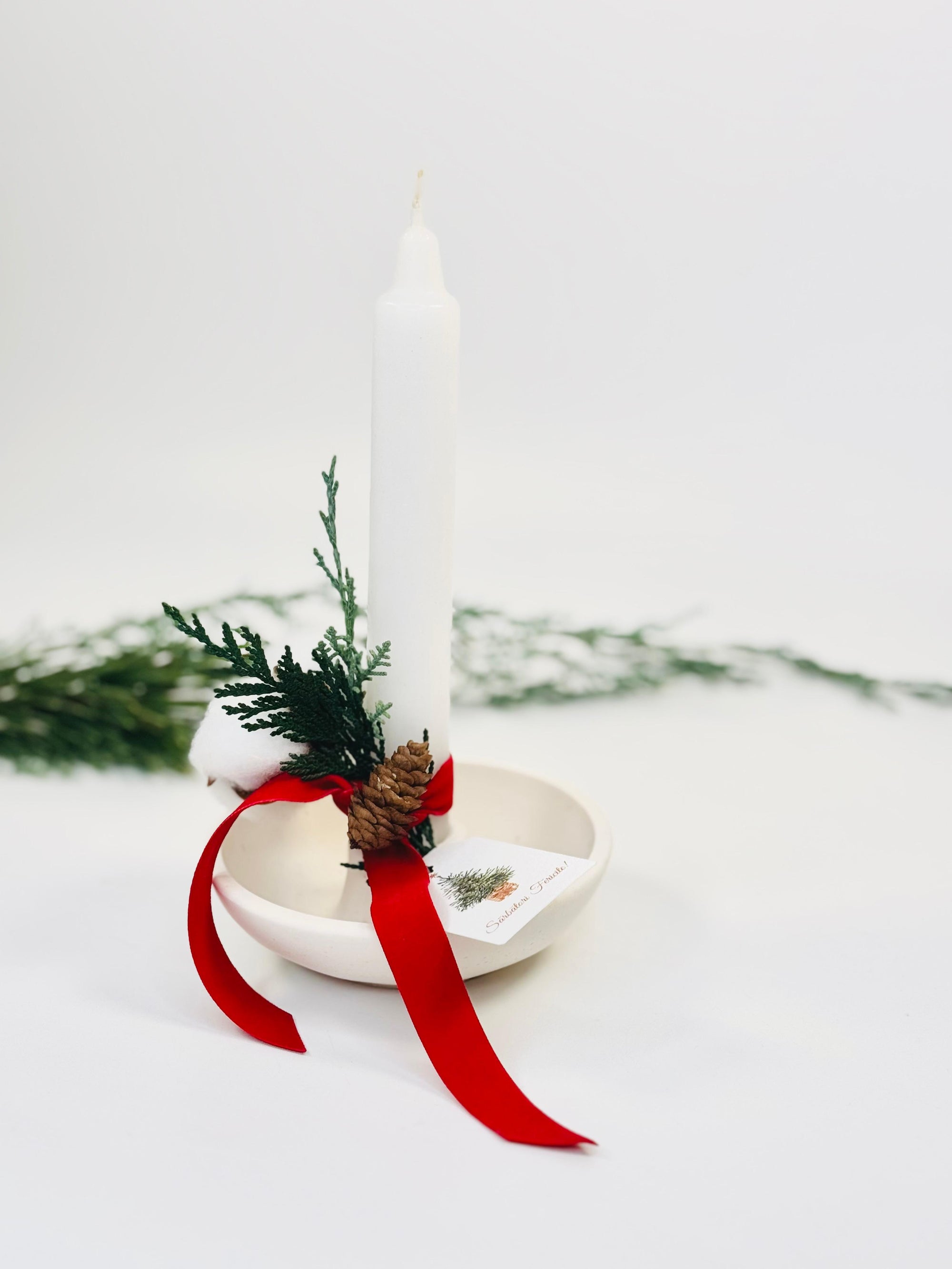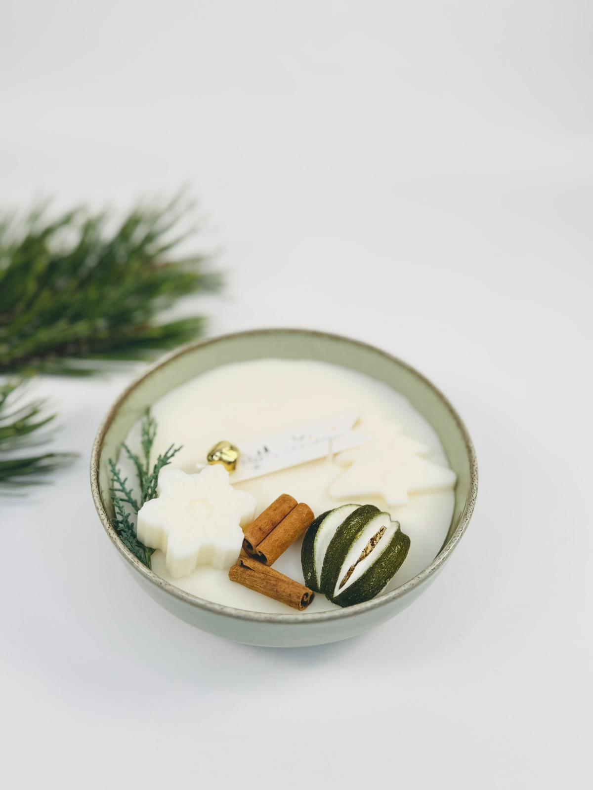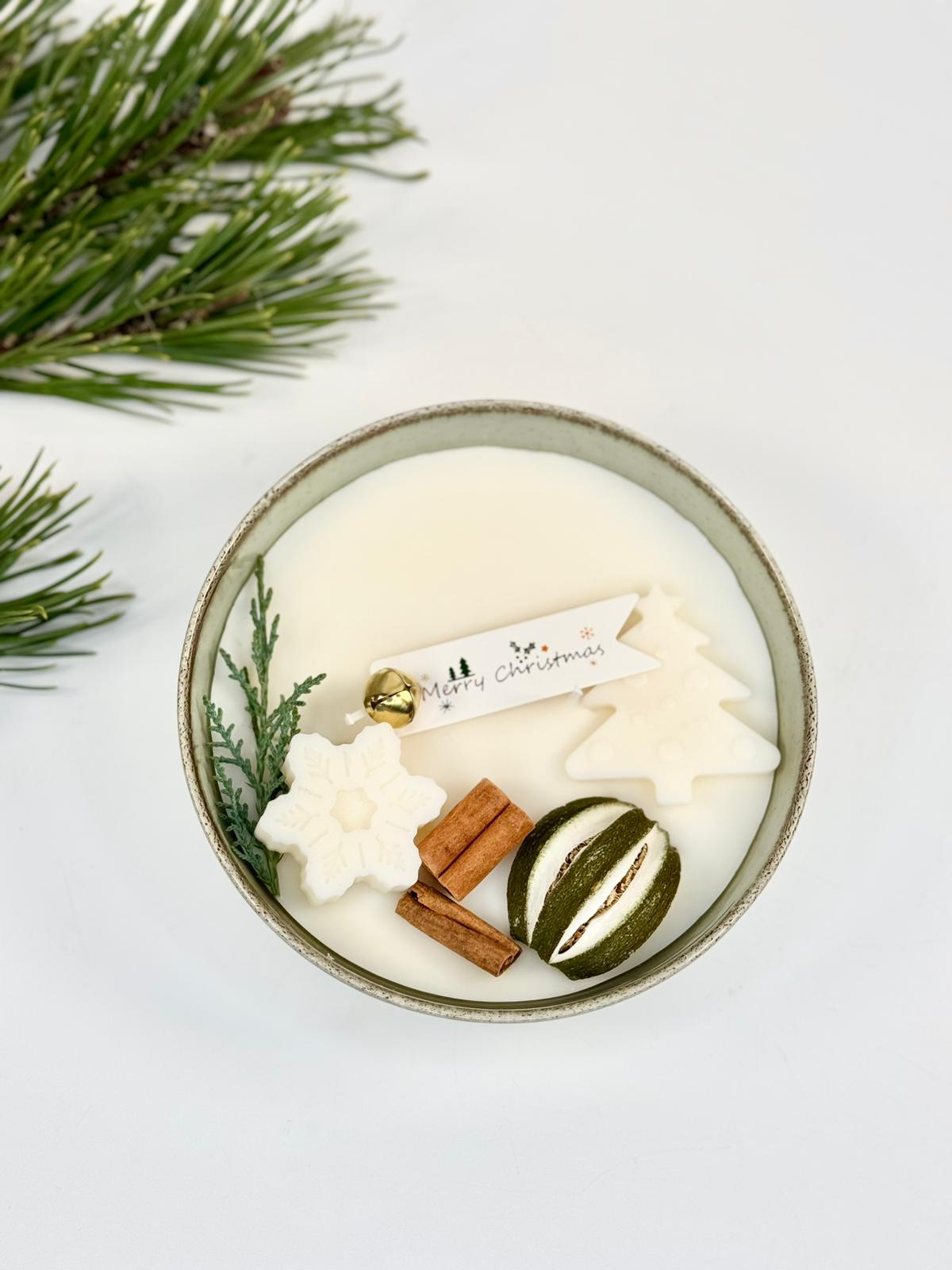 Lumanare in bol ceramic decorata in tematica de Craciun