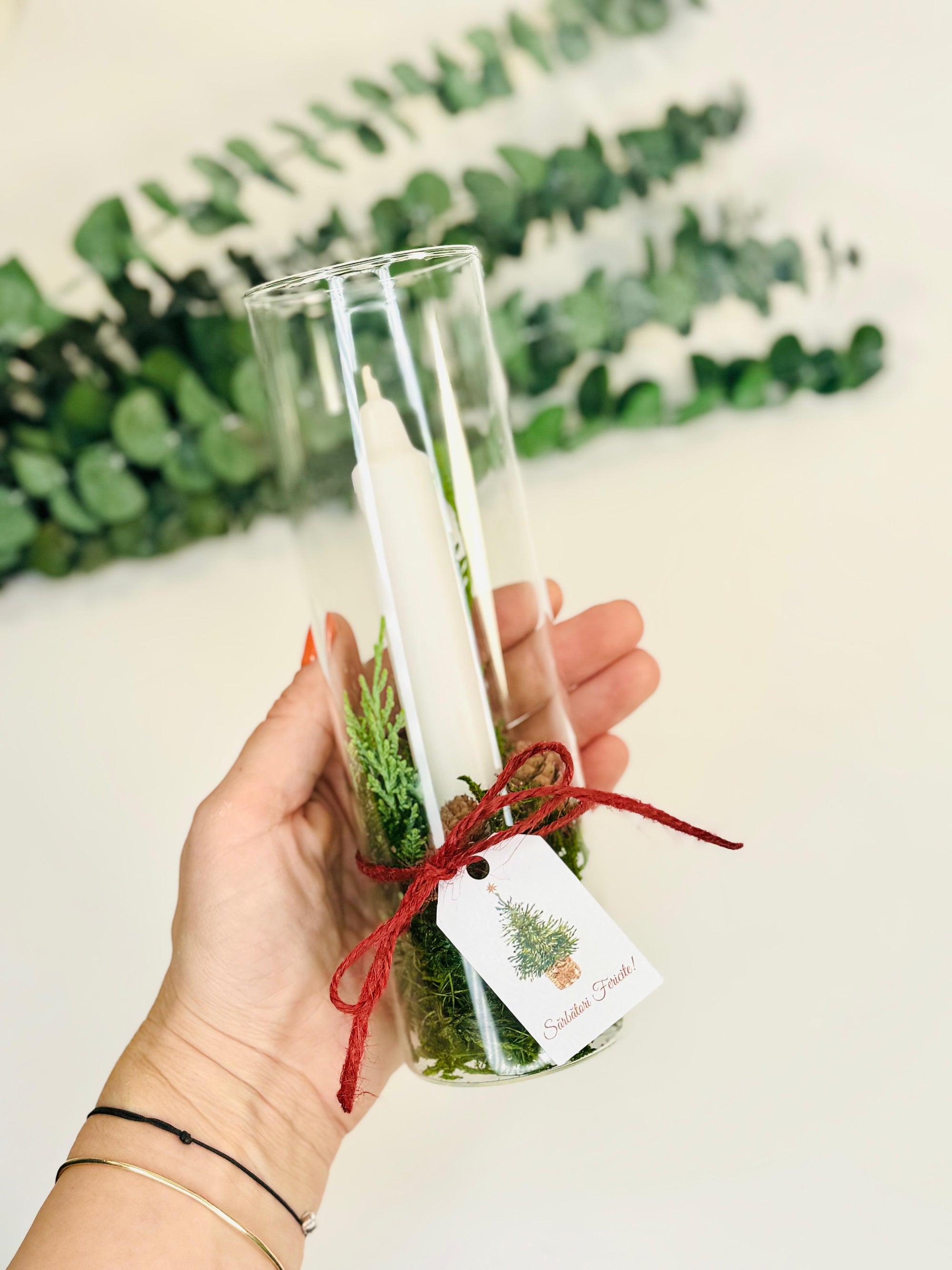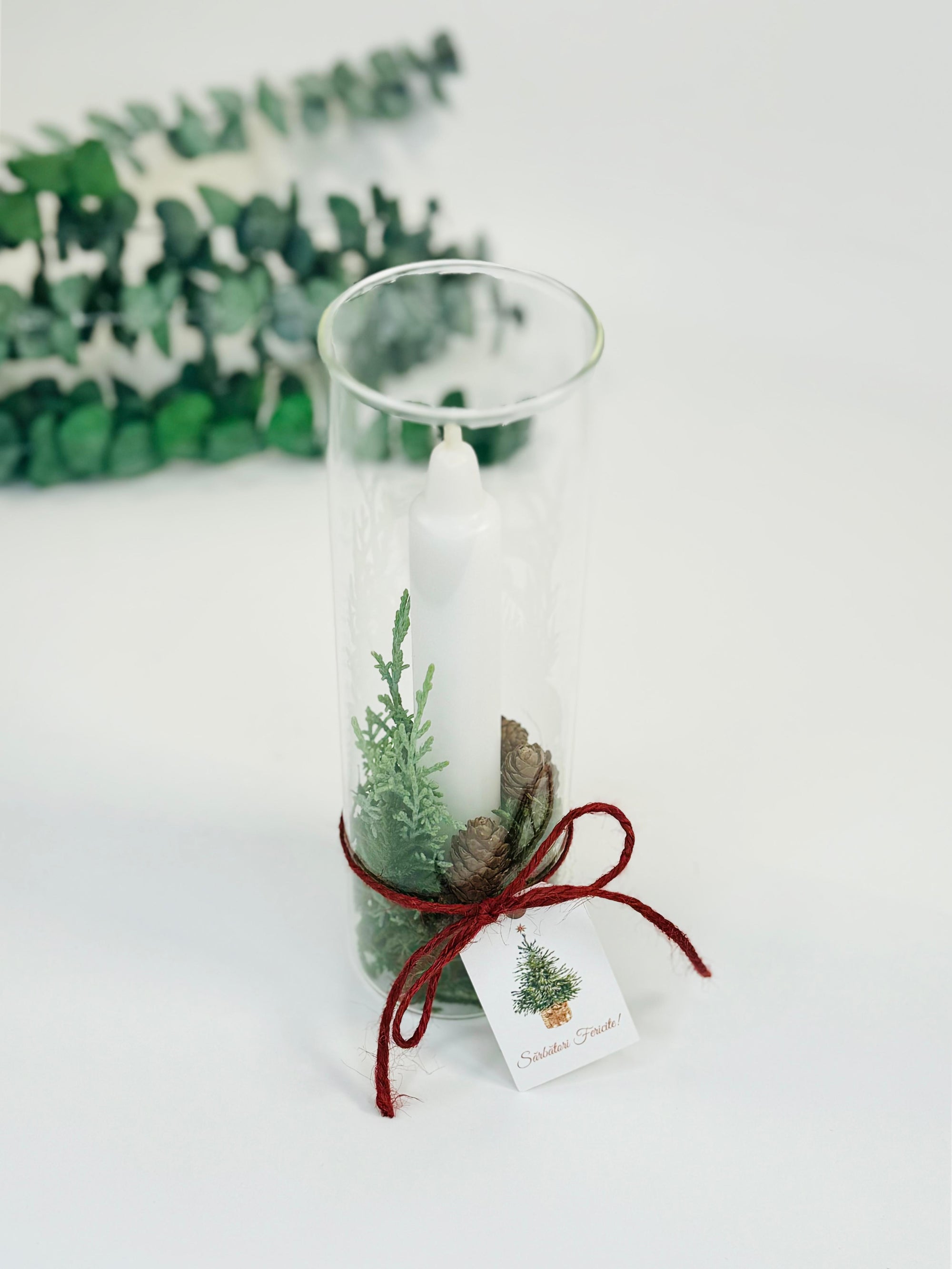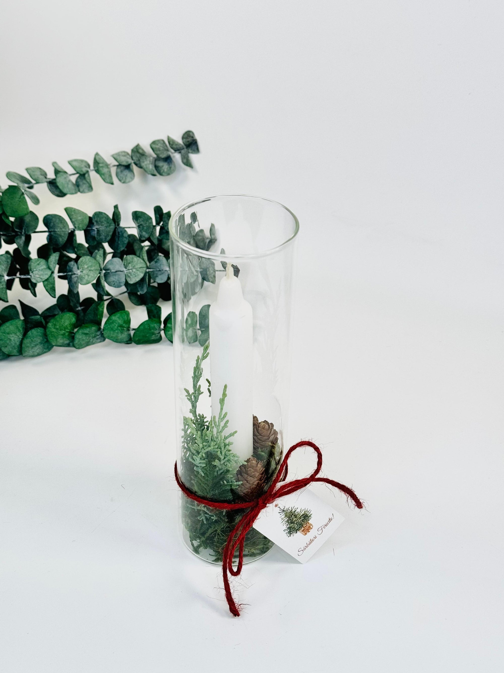 Decoratiune de Craciun cu lumanare in cilindru de sticla