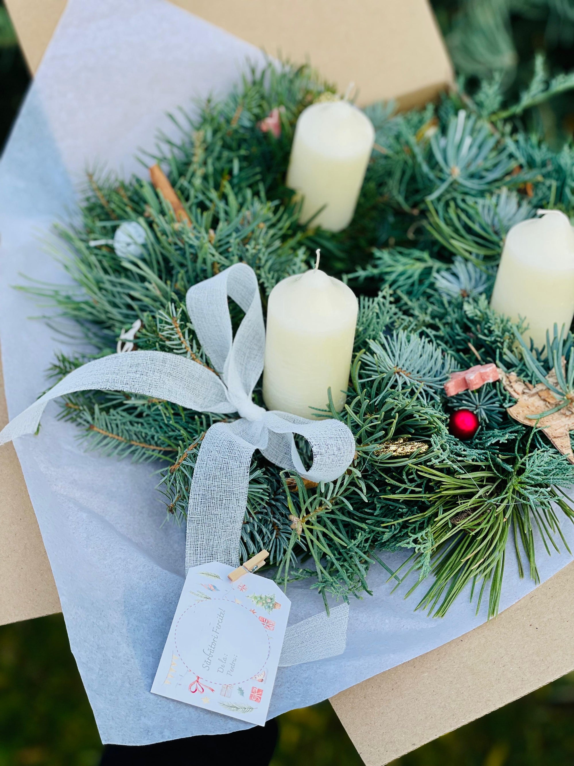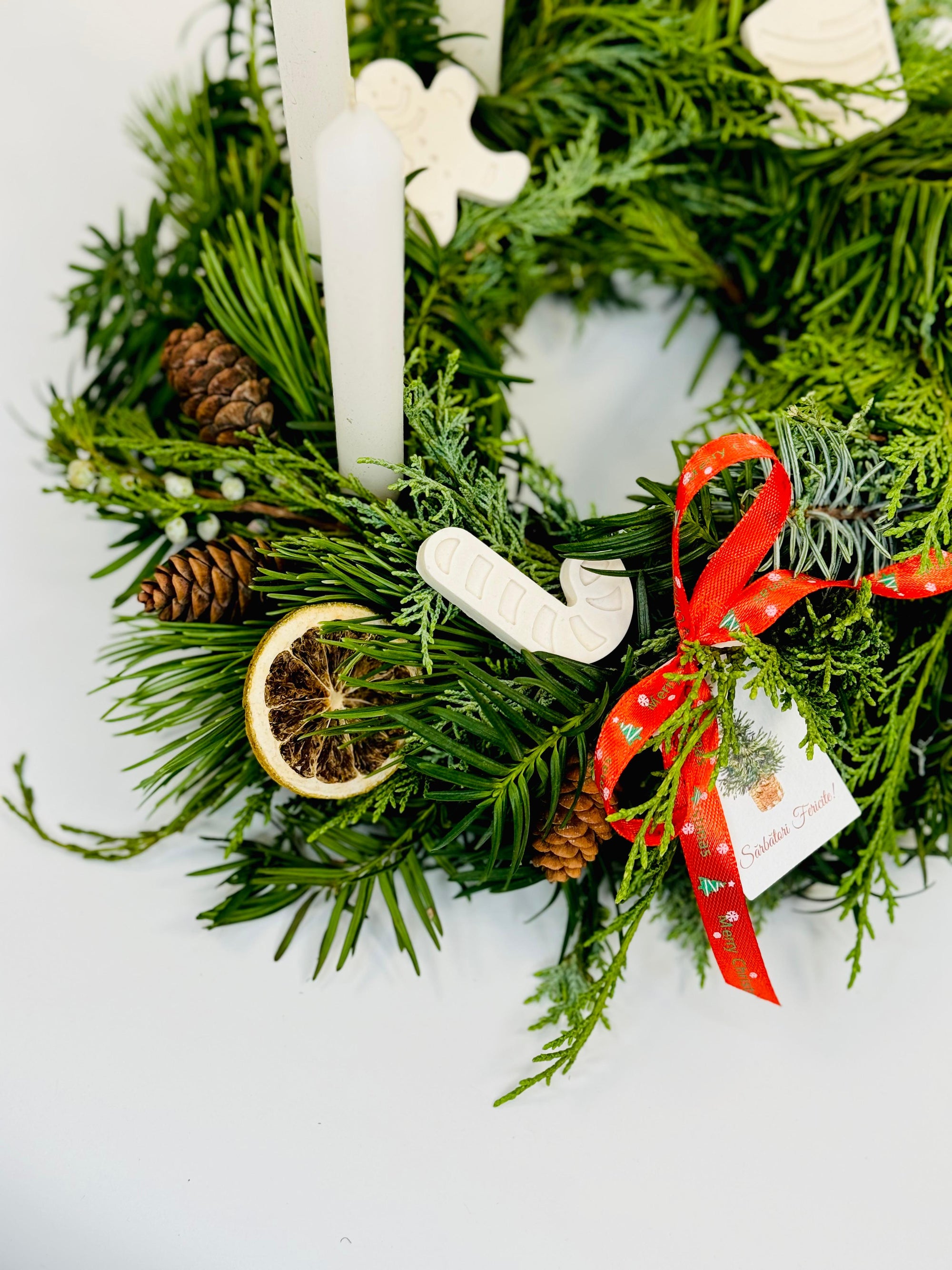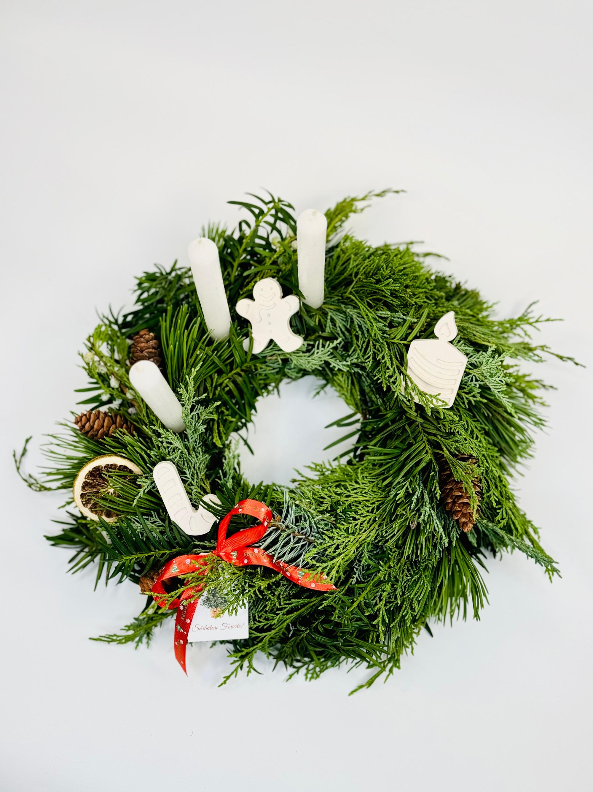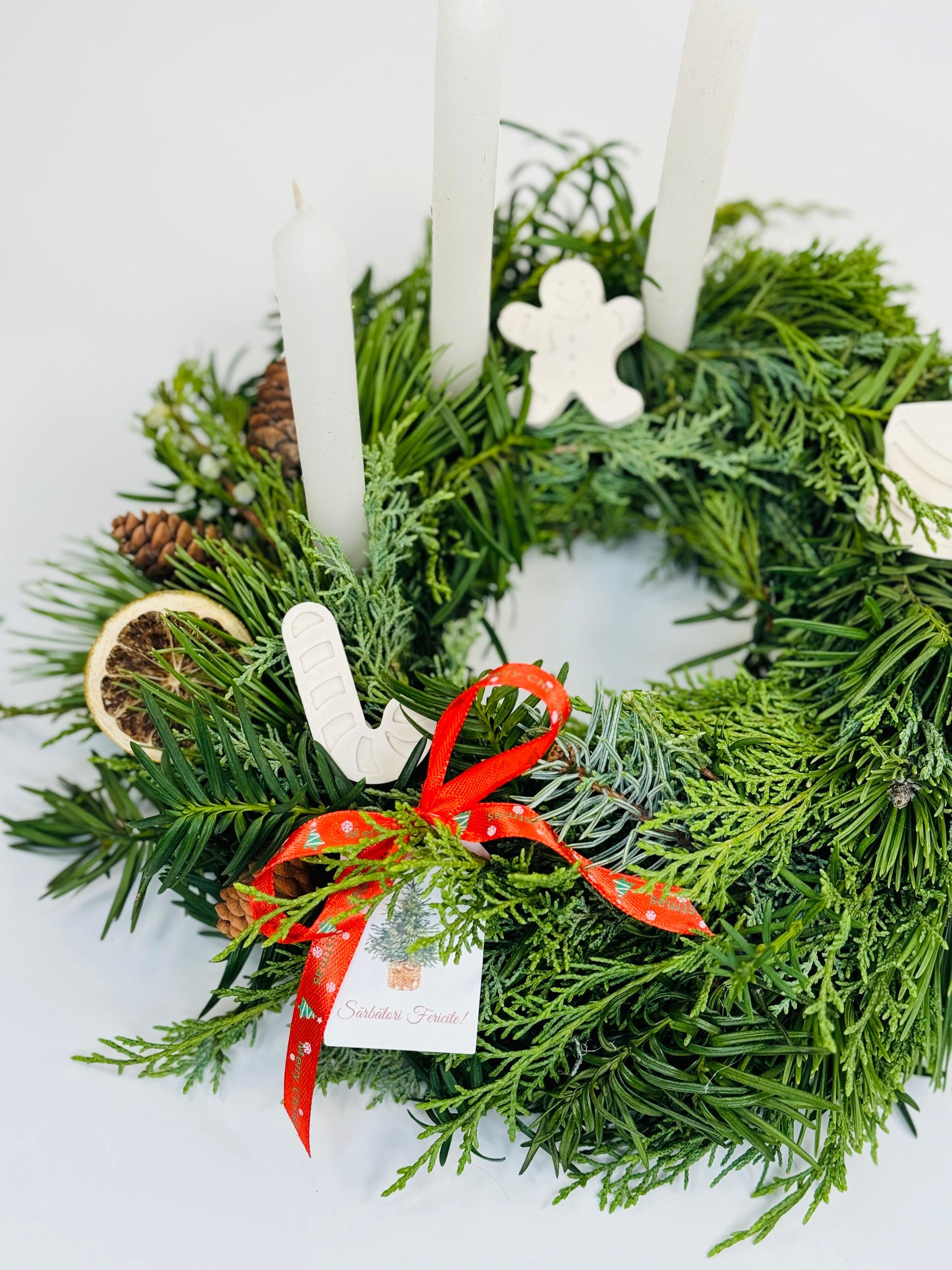Coronita de Craciun cu lumanari albe