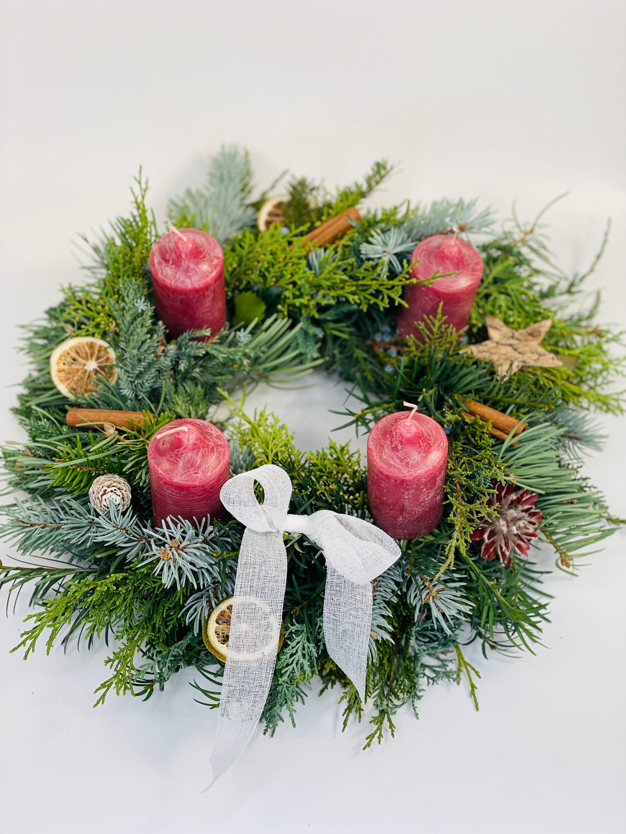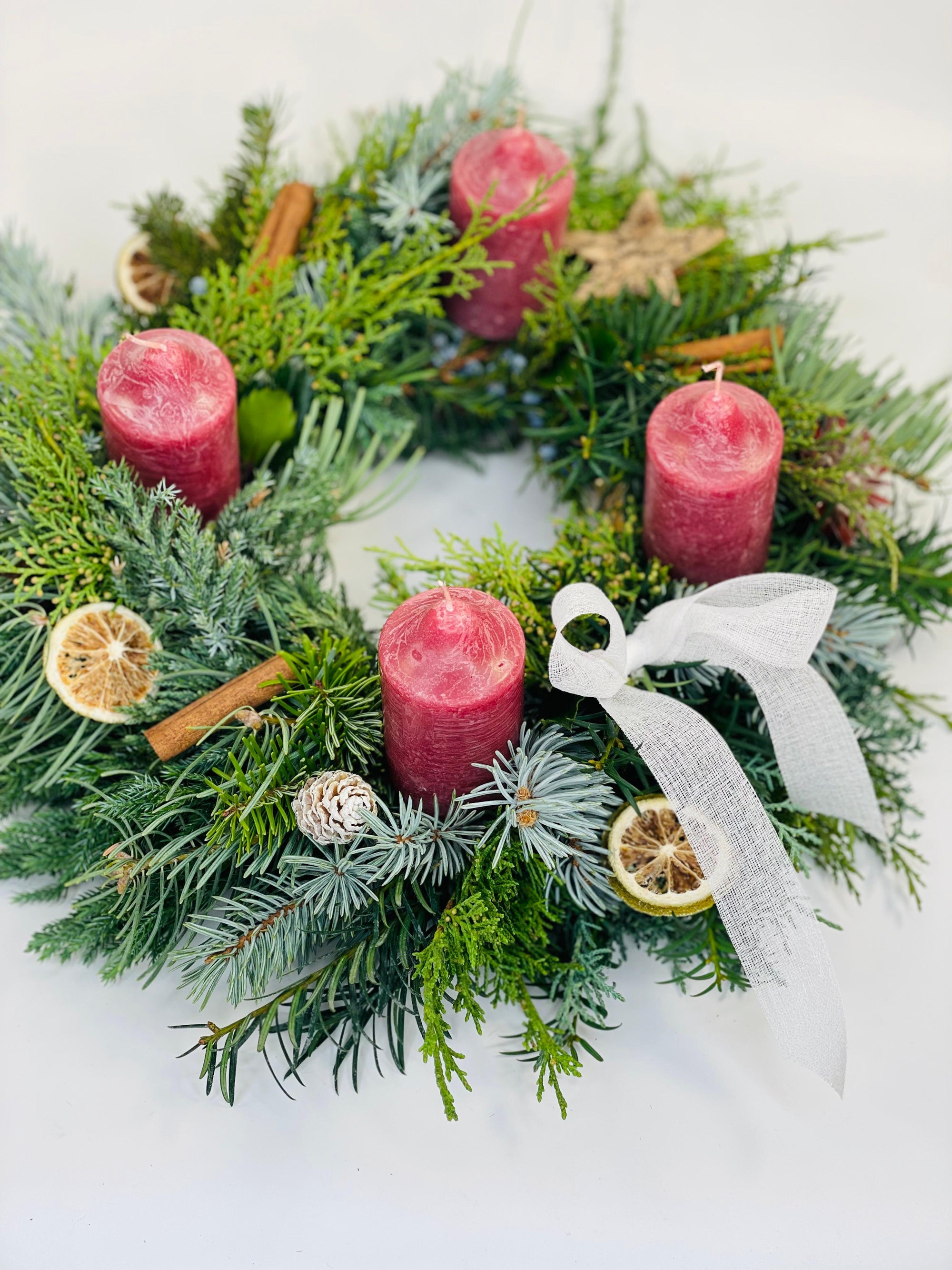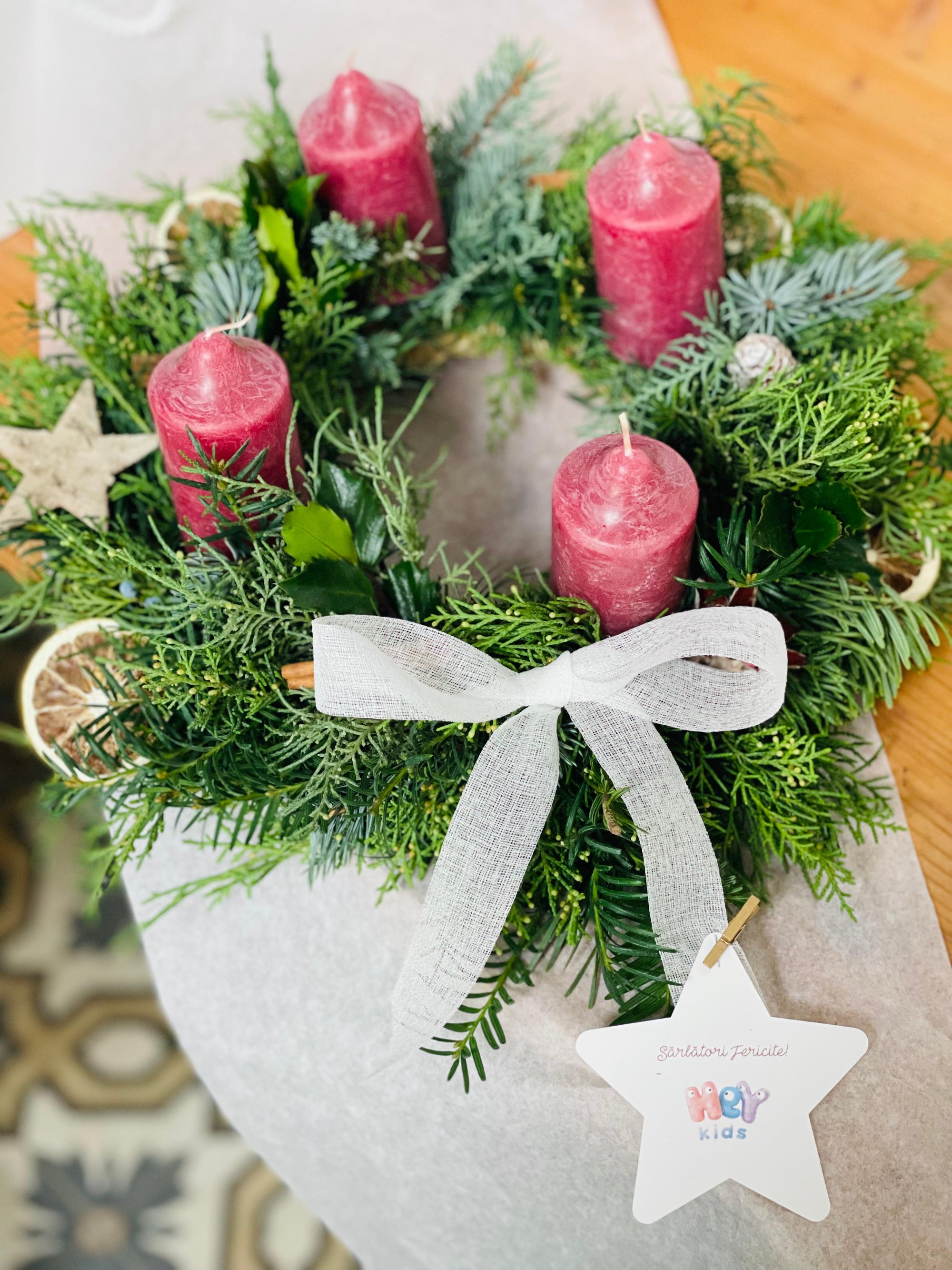 Coronita de Craciun cu lumanari albe