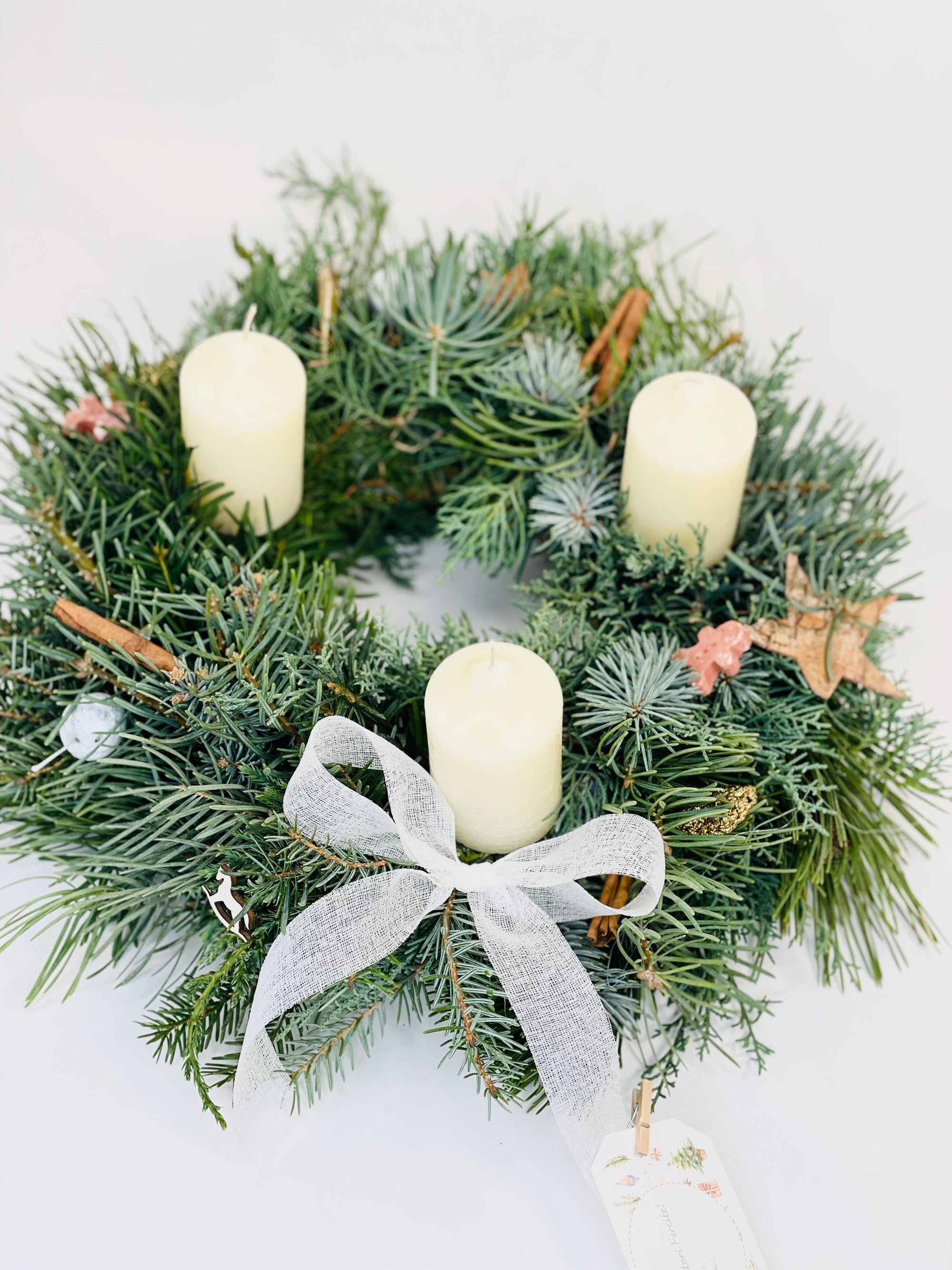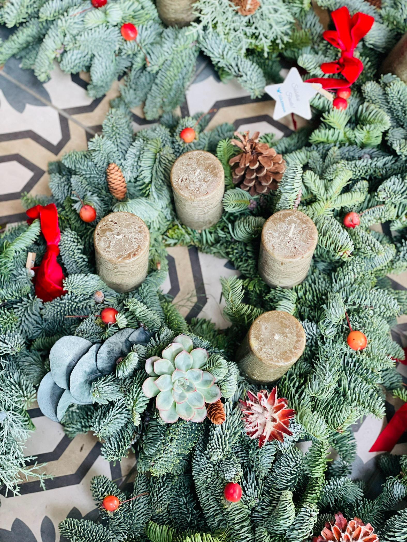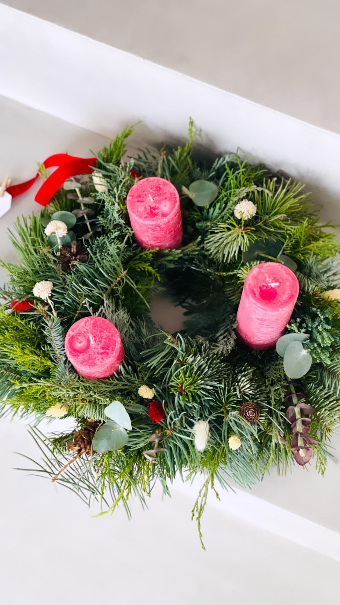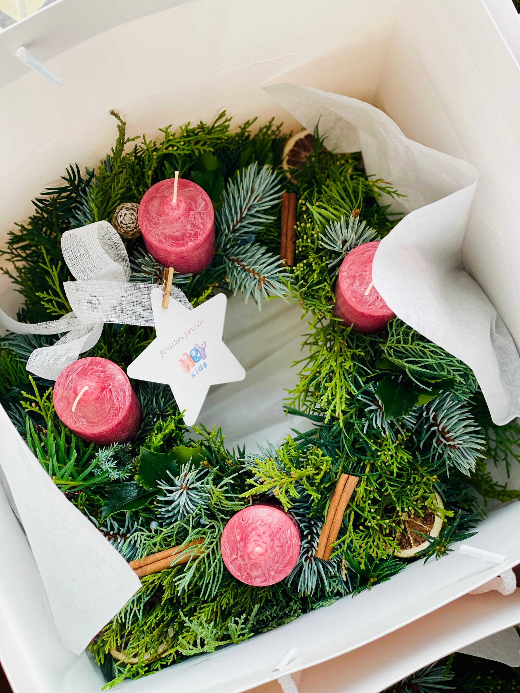 Coronita de Craciun cu lumanari albe