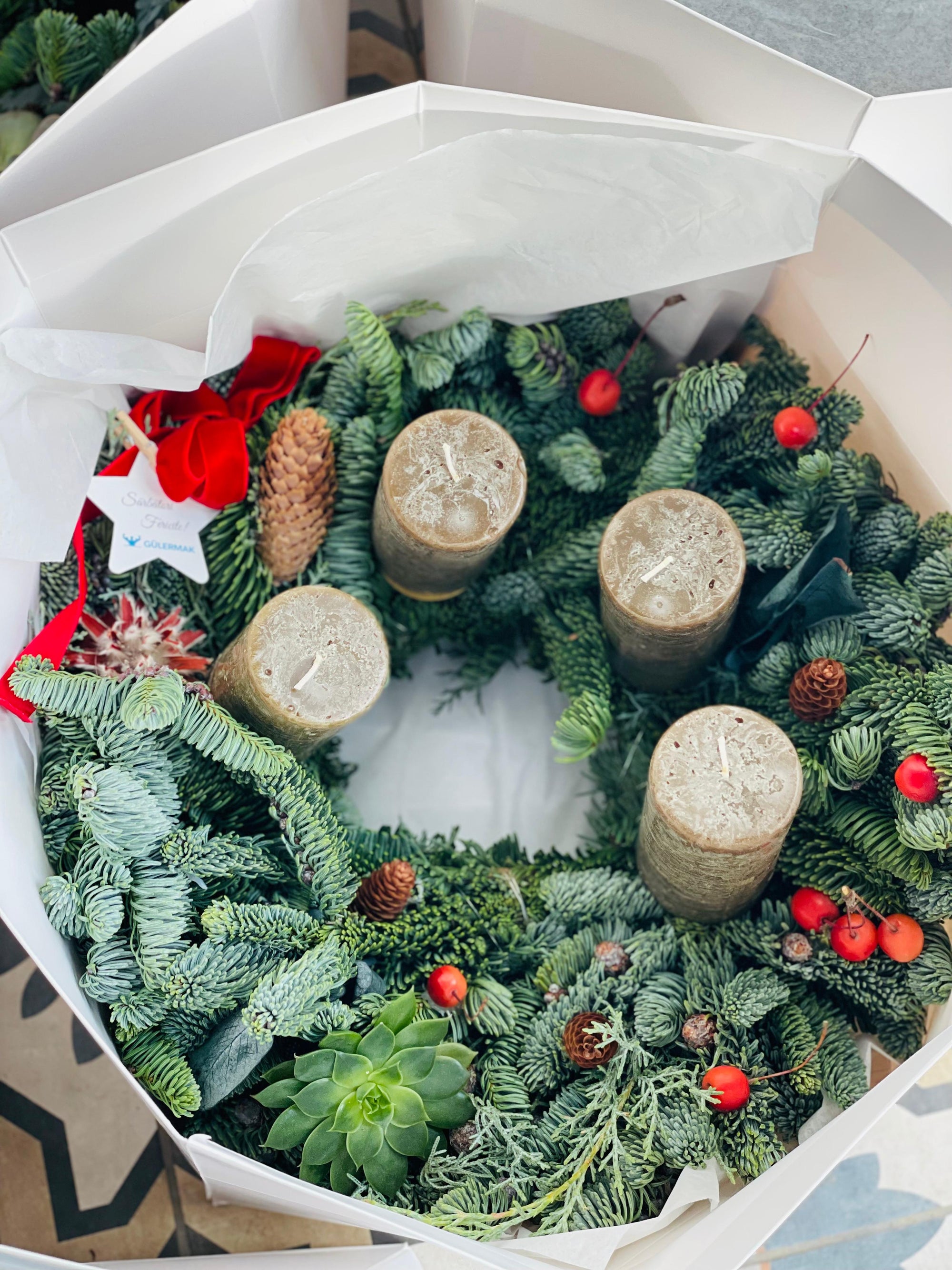 Aranjament de Craciun cu lumanare pentru masa