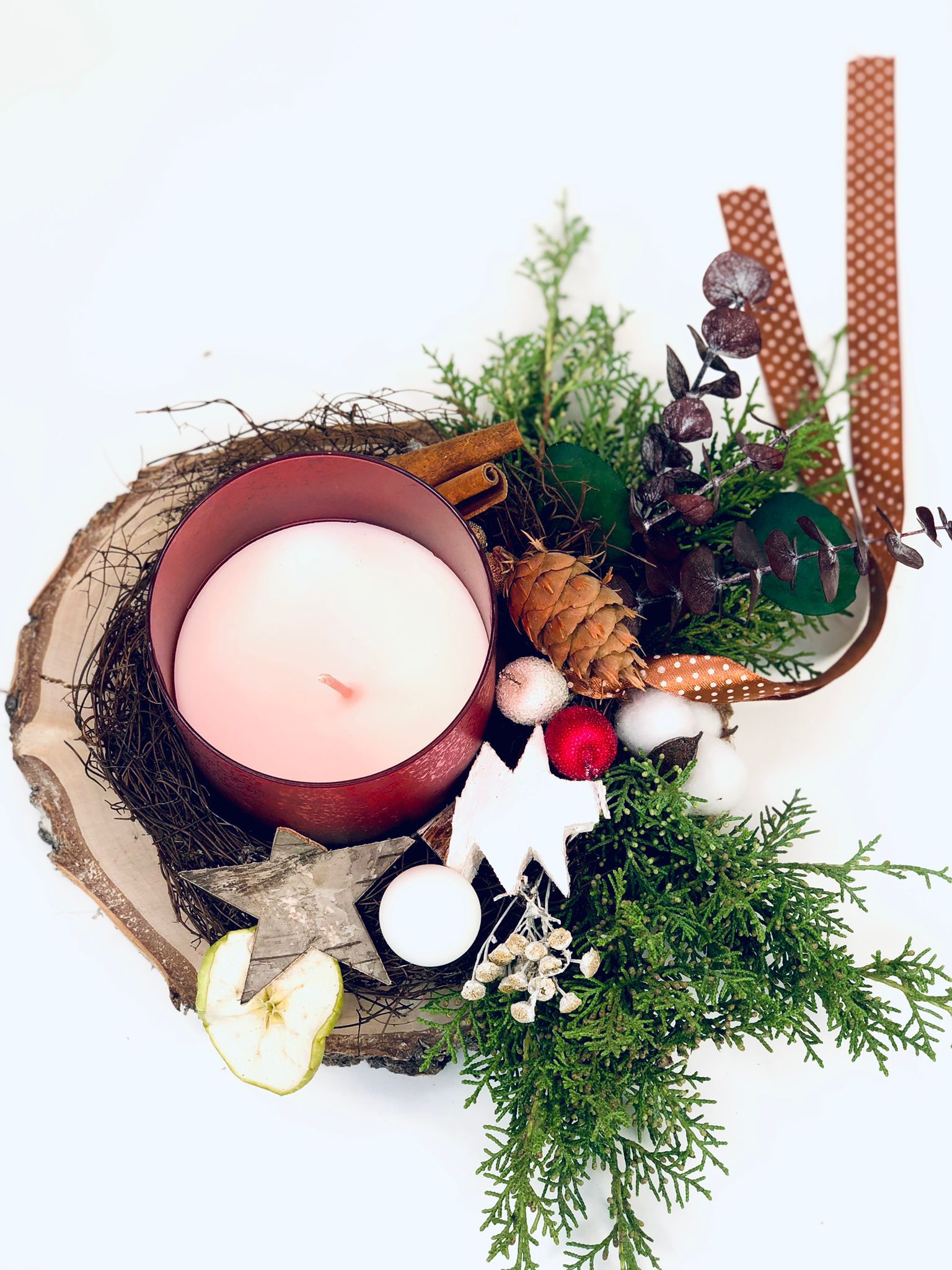 Lumanare decorativa pe felie de lemn