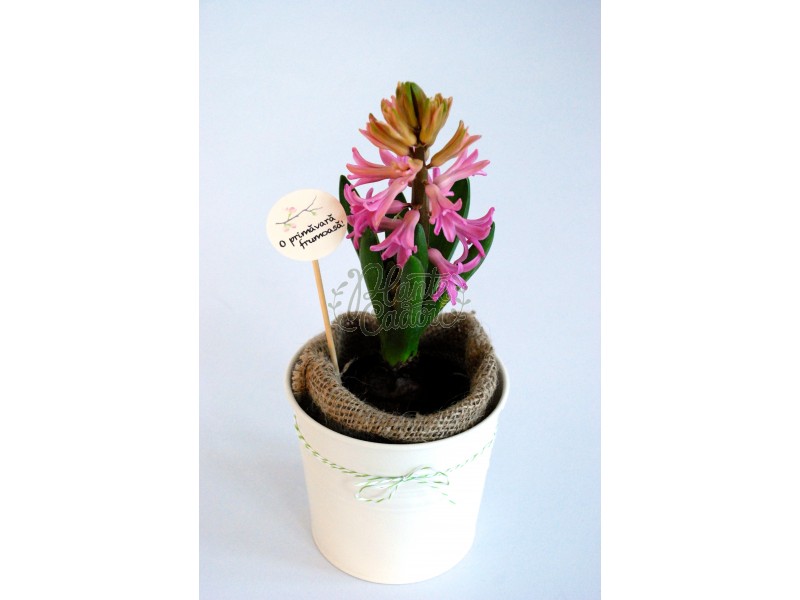Ofera Zambile, flori de primavara parfumate in ambalaje inedite de cadou. Florile sunt la ghiveci si sunt livrate insotite de instructiuni de ingrijire si plantare. Produsul este compus din: Zambila in ghiveci mic(7cm/7cm/ 8cm), sac din panza de iuta, ghiveci decorativ metalic( culoare la alegere), panglica sau snur, eticheta personalizata. Aceste flori sunt disponibile in perioada februarie-aprilie. Pretul include TVA.
